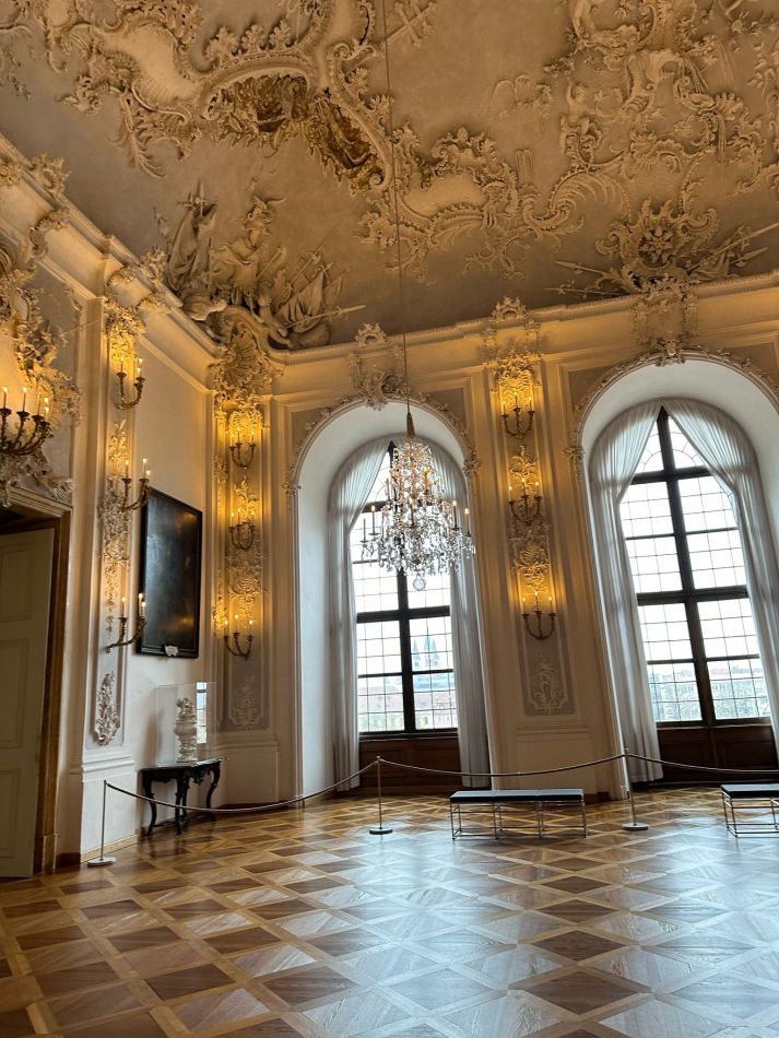 Um 8 Uhr fuhren wir an der CRW los und kamen gegen 9 Uhr an der Residenz an. Bis 10 Uhr erkundeten wir in Kleingruppen den Hofgarten und bearbeiteten dabei das uns gegebene Arbeitsblatt. Um 10:15 Uhr kam unser Residenzführer zu uns, und die Führung begann. Zuerst erfuhren wir, wie lange der Bau dauerte, nämlich von 1720 bis 1780, denn schließlich ist die Residenz sehr groß und alles wurde per Hand angefertigt. Danach stiegen wir die Treppen hoch und bestaunten das riesige Deckenfresko. Es zeigt die damals bekannten Kontinente Afrika, Amerika, Asien und Europa. Anschließend sahen wir unter anderem den eindrucksvollen Kaisersaal. Er wurde erbaut, falls der Kaiser zur Residenz zu Besuch kam, was jedoch nie geschah. Danach wurden uns noch weitere Räume gezeigt sowie die unterschiedlichen Bautechniken, die in der Residenz genutzt wurden, zum Beispiel Stuck-, Glas- und Schmiedekunst. Wir wurden auch durch das Spiegelkabinett geführt. Dieses und der Kaisersaal sind die bekanntesten Räume der Residenz. Nach der Führung hatten wir freie Zeit bis 14 Uhr, dann trafen wir uns wieder vor der Residenz. Die meisten gingen zu McDonald’s und shoppen. 😊 Zum Schluss fuhren wir wieder zurück zur Schule. Es war ein interessanter Ausflug, und wir haben viel über die Residenz gelernt.