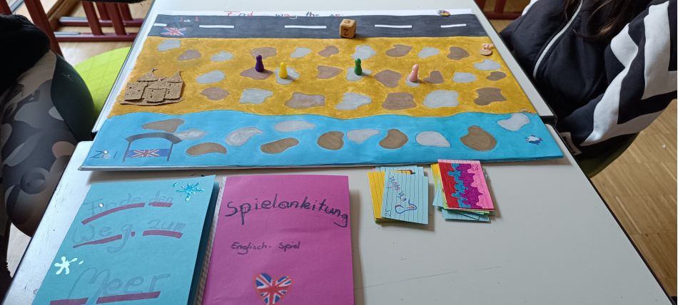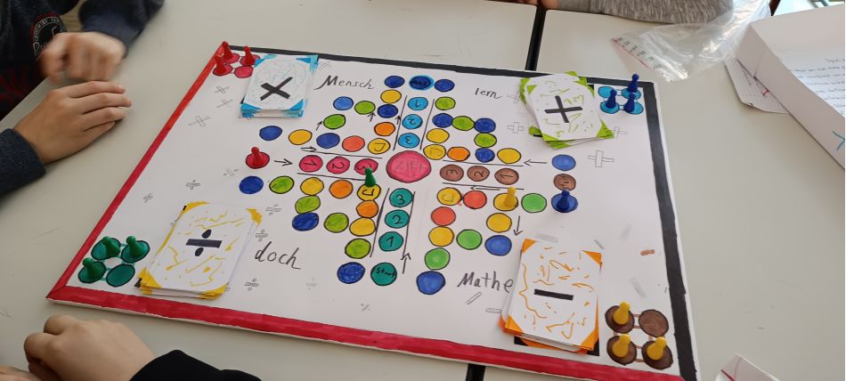 Zunächst entwickelten die Schülerinnen und Schüler gemeinsam eine Spielidee und diskutierten wichtige Fragen: Sie entschieden über die Anzahl der Spieler, die Zielgruppe des Spiels, die Spielabläufe, die Regeln sowie das Design des Spielbretts und der Figuren. Besonderer Wert wurde darauf gelegt, dass die Spielmaterialien nicht nur zum gewählten Fach passen, sondern auch für die Lernförderung (Lernen lernen) geeignet sind. Nachdem die Konzepte feststanden, stellten die Gruppen ihre Spielideen der Klasse vor. Anschließend ging es an die Gestaltung des Brettspiels. Die Aufgaben wurden gerecht aufgeteilt, ein Zeitwächter wurde ernannt und regelmäßige Besprechungen in den Gruppen sorgten dafür, dass das Projekt zielorientiert voranschreiten konnte. Abschließend wurde jedes Spiel getestet. Andere Gruppen hatten die Möglichkeit, die Spiele auszuprobieren und Feedback zu geben. Dieser Prozess hat nicht nur das gemeinschaftliche Arbeiten gefördert, sondern den Schülerinnen und Schülern auch wichtige Kompetenzen in der Planung und Umsetzung von Projekten vermittelt. Ein rundum gelungenes Projekt, das zeigt, wie Lernen und Spielen effektiv miteinander verbunden werden können.