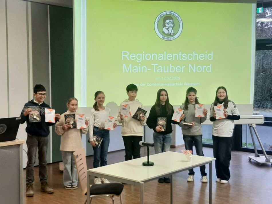 Am Mittwoch wurde die Mensa der Comenius-Realschule Wertheim zum Zentrum mitreißender Leseabenteuer: Sechs Schulsiegerinnen und Schulsieger aus dem Main-Tauber-Kreis traten beim Kreisentscheid Nord des Vorlesewettbewerbs gegeneinander an. Mit flüssigem Vortrag, stimmiger Betonung und spürbarer Lesefreude begeisterten sie Jury und Publikum gleichermaßen.