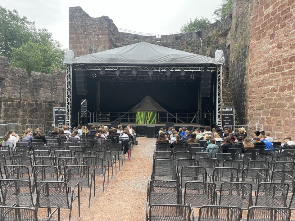 Die Teilnehmer des Schulmusicals hatten heute ihren Belohnungsausflug für die großartige Leistung, die sie erbracht haben während des Schulmusicals im November letzten Jahres. Der Wettergott hatte ein Erbarmen mit uns! Pünktlich zum Einmannstück „Die Wanze“, auf der Burg Wertheim, hat es aufgehört zu regnen. Anschließend ging es zum Auspowern und Stärken auf die Leberklinge. Wir bedanken uns für die tolle Arbeit, die geleistet wurde, bei allen Teilnehmern, Organisatoren sowie der Stadt Wertheim.