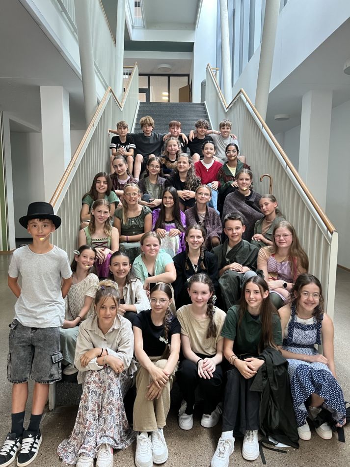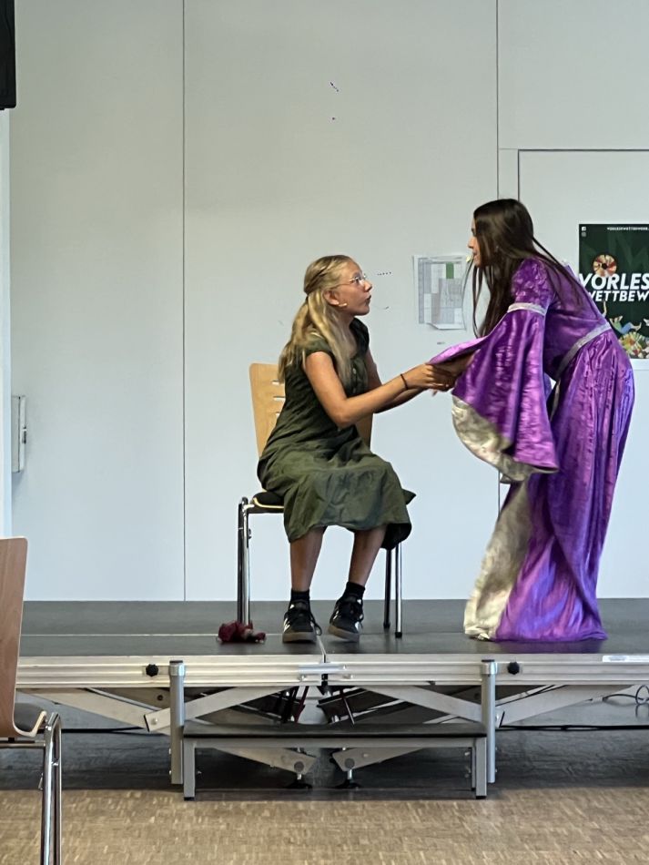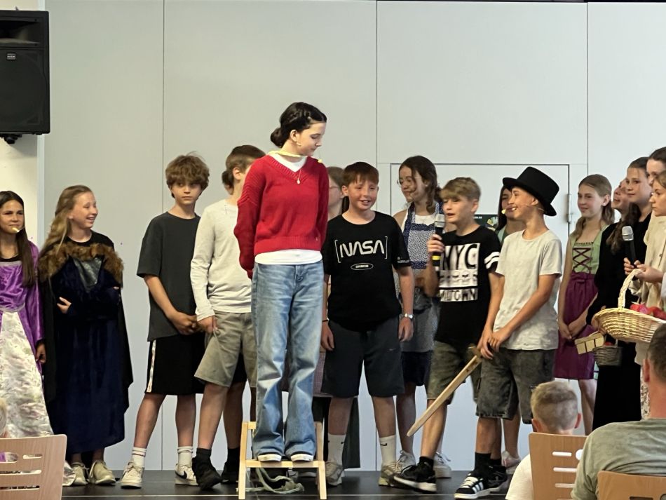 Die Klasse 6s präsentierte am Donnerstag, den 26.06.2025 in der Mensa das englische Theaterstück ,Robin Hood‘. Es waren Familien und Lehrer der Schüler eingeladen. Danach gab es Fingerfood und alle haben ein bisschen miteinander geredet. Ein paar Kinder sammelten Spenden für die Klassenkasse. Die ganze Klasse bedankte sich bei allen Helfern und Helferinnen, insbesondere bei Frau Kegelmann, die das ganze Theaterstück auf die Beine gestellt hat.