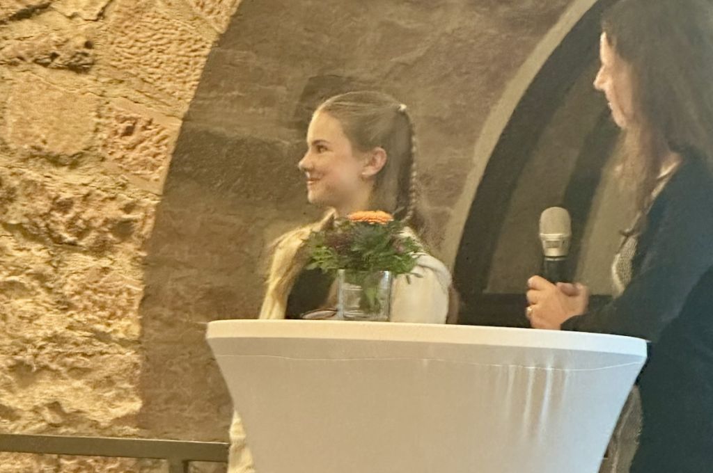 Amelie Roth zeigte im laufenden Schuljahr ein außergewöhnliches Maß an Engagement und Leistungsbereitschaft. Neben der intensiven Vorbereitung auf das Schulmusical, bei dem sie selbst eine Hauptrolle übernimmt, nahm sie erfolgreich am Wettbewerb „Kreative Köpfe 2025“ teil.