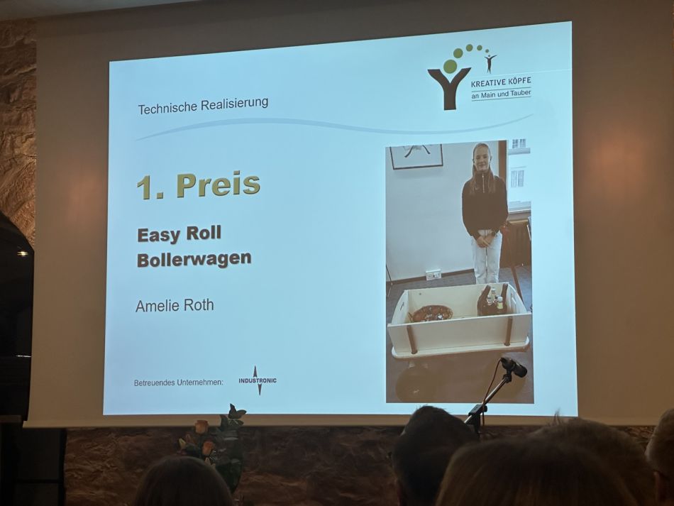 Amelie überzeugte die Jury insbesondere damit, dass sie einen vollständig funktionsfähigen motorisierten Bollerwagen entwickelt und hergestellt hat. Dabei zeigte sie ein herausragendes technisches Verständnis, hohe Kreativität sowie ein überzeugendes handwerkliches Geschick. Für ihre präzise technische Umsetzung und ihre innovative Idee wurde sie mit dem 1. Preis in der Kategorie „Technische Realisierung“ ausgezeichnet.