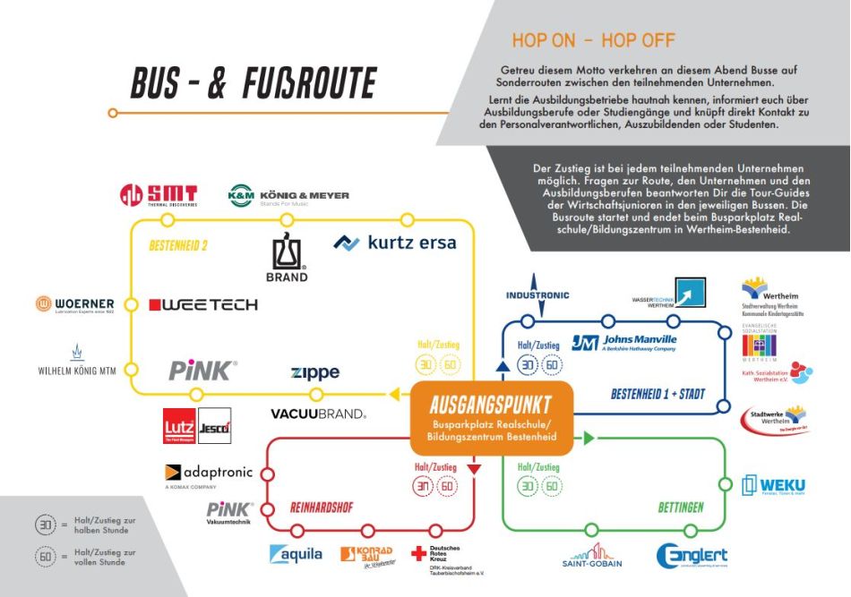 Am 9.10.24 von 16.00 bis 21.00 Uhr öffnen viele Unternehmen und Arbeitergeber in Wertheim ihre Türen und Tore für Ausbildungsinteressierte. Ganz unkompliziert - ohne Vorgabe eines Programms - präsentieren sie sich interessierten Schülerinnen und Schülern sowie deren Eltern. Die Ausbildungsbetriebe informieren direkt vor Ort über das Unternehmen, dessen Ausbildungsmöglichkeiten sowie Praktika. Die Schülerinnen und Schüler haben die Chance, die Unternehmen nach persönlichen Wünschen zu besuchen und sich dabei ein umfassendes Bild vom zukünftigen Arbeitsplatz zu machen. Diese Möglichkeit gilt es zu nutzen!