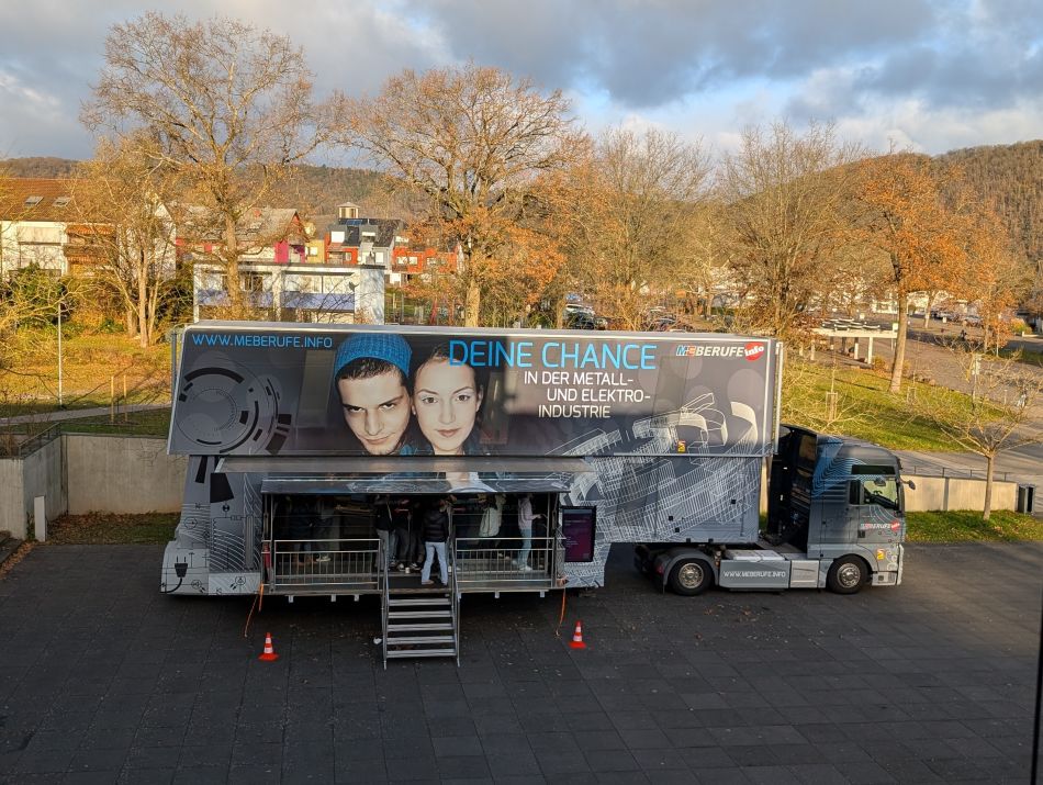 Berufsorientierung und MINT an der CRW: Der Truck der Metall- und Elektroindustrie - Anfassen ausdrücklich erwünscht!
