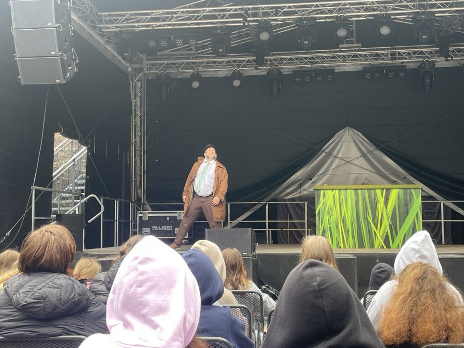 Die Teilnehmer des Schulmusicals hatten heute ihren Belohnungsausflug für die großartige Leistung, die sie erbracht haben während des Schulmusicals im November letzten Jahres. Der Wettergott hatte ein Erbarmen mit uns! Pünktlich zum Einmannstück „Die Wanze“, auf der Burg Wertheim, hat es aufgehört zu regnen. Anschließend ging es zum Auspowern und Stärken auf die Leberklinge. Wir bedanken uns für die tolle Arbeit, die geleistet wurde, bei allen Teilnehmern, Organisatoren sowie der Stadt Wertheim.