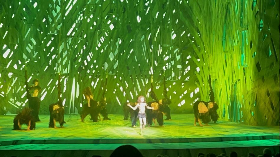 „Tarzan“ erzählt die Geschichte eines kleinen Waisenjungen, der von Gorillas großgezogen wird und nach seiner Herkunft sucht. Dabei begegnet er seiner großen Liebe Jane und steht vor einer schweren Entscheidung. Die musikalische und akrobatische Show war ein echtes Highlight, die Darsteller an den Lianen flogen über das Publikum hinweg und sorgten damit für ein hautnahes, spektakuläres Erlebnis im Saal.