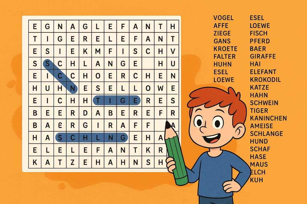Unser Schüler Lev hat ein spannendes Buchstabenrätsel erstellt! In diesem Suchsel verstecken sich jede Menge Tiere – schaffst du es, alle zu entdecken?